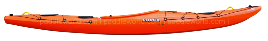 Influences from the P&H Delphin and the Pyranha Fusion and aspects of white-water kayak design feature in the Hammer; giving both sea and white-water paddlers the opportunity to have some serious fun. The Hammer’s dynamically angled planning hull, bow volume and narrowed stern keep it fast and light on a wave and super manoeuvrable around tight rock outcrops and in coastal swell.
